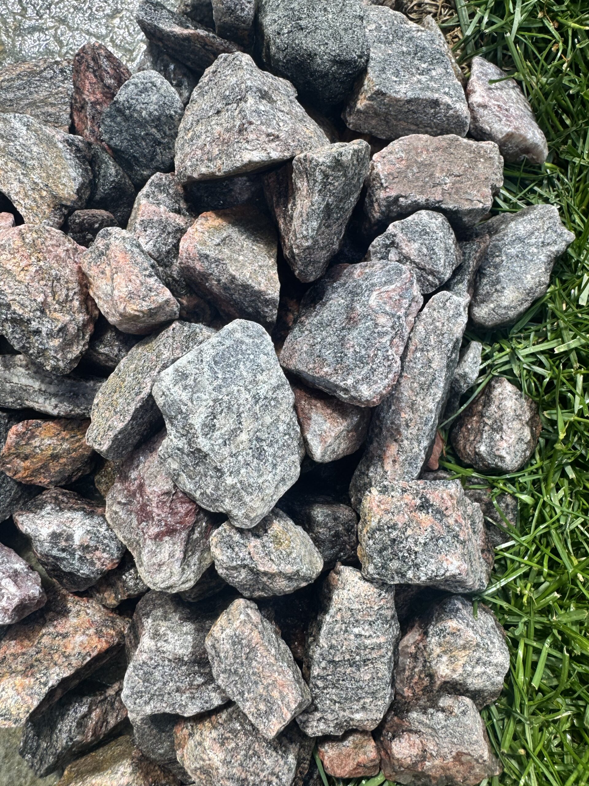 Our most popular boulder but crushed to 1.5″. Featuring varying tones of black, white, gray and tan. This decorative gravel is sure to go with any landscape.